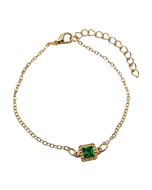 Square Green Stones Chain Bracelet