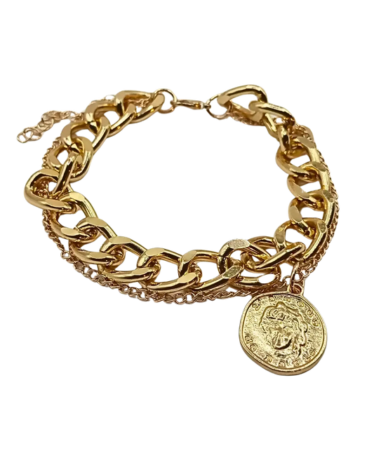 Golden Link Bracelet with Golden Disc